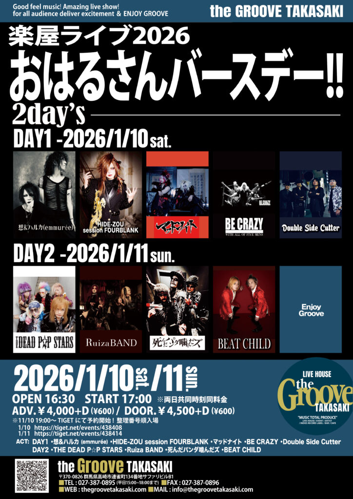 2026年1月11日(日)TheGrooveTAKASAKI「おはるさんバースデー‼」にRuiza BAND出演決定!!!